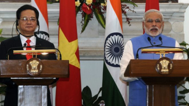 Tại buổi họp giữa Thủ tướng Narendra Modi và Thủ tướng Nguyễn Tấn Dũng, Ấn Độ đã ký một thỏa thuận nhằm tăng vai trò của Delhi trong hoạt động khai thác dầu khí của Việt Nam tại biển Đông, nơi Trung Quốc và Việt Nam đang có những tranh chấp lớn về chủ quyền.