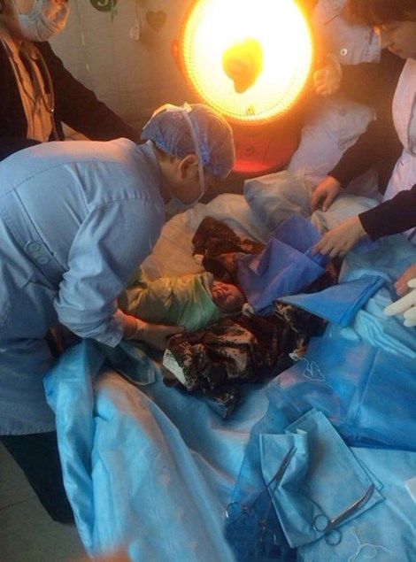Trong khi đó bé trai sơ sinh được đưa đến bệnh viện và chăm sóc đặc biệt. Hiện nay em đã hoàn toàn khỏe mạnh. Các bác sĩ hy vọng em sẽ không phải chịu biến chứng nào trong thử thách đầu đời này.