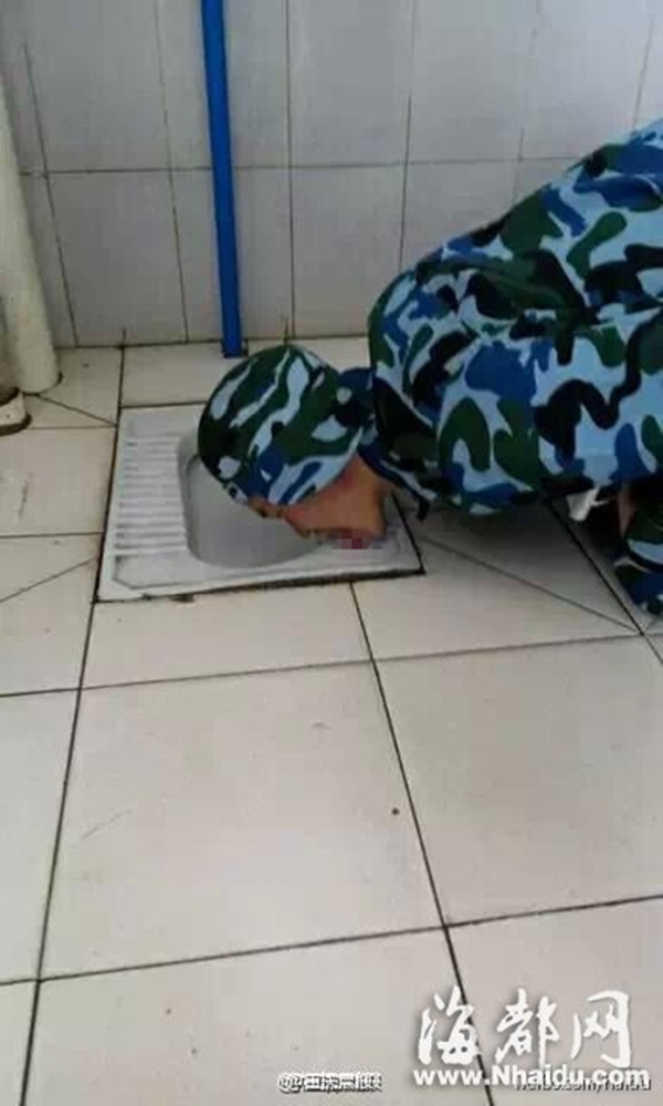 H́nh ảnh một nam sinh đang quỳ gối liếm bồn cầu ngay sau khi chia sẻ trên Weibo đă khiến cư dân mạng xôn xao. Một số người nói, cậu sinh viên này do không chịu dọn pḥng sạch sẽ nên đă bị các thầy giáo bắt phạt vệ sinh căn pḥng bằng… lưỡi.