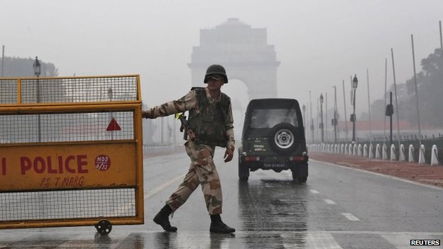 Đại lộ Rajpath đă bị cấm lưu thông hoàn toàn gần một tuần nay, và một lực lượng binh sĩ hùng hậu đă được huy động để canh gác trên toàn tuyến đường.