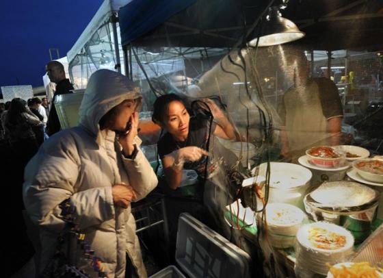 Một sạp bán thức ăn nhanh tại chợ đêm. Chủ quầy phải trả tiền thuê chỗ là 150 USD mỗi đêm.