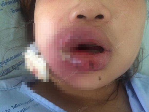 Một phụ nữ bị viêm nhiễm miệng vì làm đẹp là trường hợp ở Thái Lan. Cô gái bị viêm nhiễm miệng vì làm đẹp khi chọn trung tâm 'rởm'.