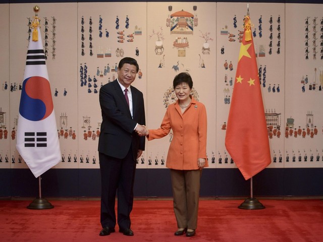 Tổng thống Hàn Quốc Park Geun Hye (phải) và Chủ tịch Trung Quốc Tập Cận B́nh.