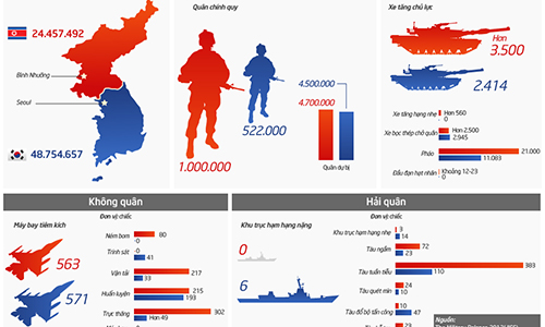 Tương quan lực lượng hai miền Triều Tiên .