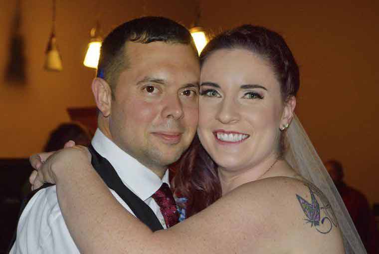 Vợ chồng Sarah hạnh phúc trong ngày cưới.