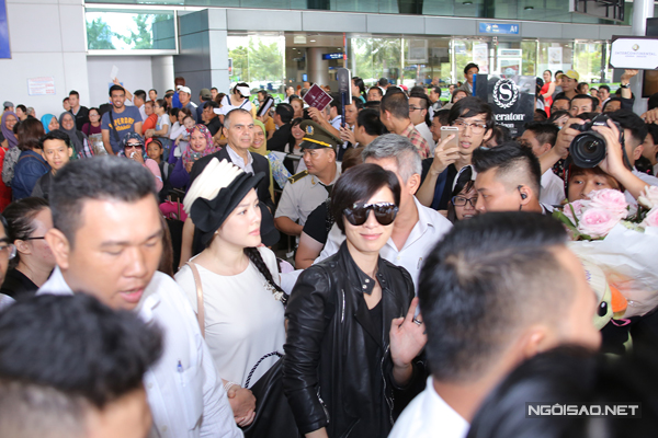 Xa Thi Mạn với trang phục vô cùng cá tính và khỏe khoắn xuất hiện tại sân bay Việt Nam. Nữ diễn viên luôn cười tươi và vẫy chào các khán giả hâm mộ. Lý Nhã Kỳ có mặt rất sớm tại sân bay để đón vị khách mời quan trọng trong chương trình thời trang do cô tổ chức.