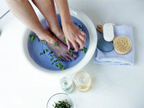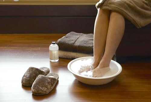 Bạn đun sôi lên và lấy nước ấm này ra ngâm chân trong ngày nhiều lần. Ảnh minh họa
