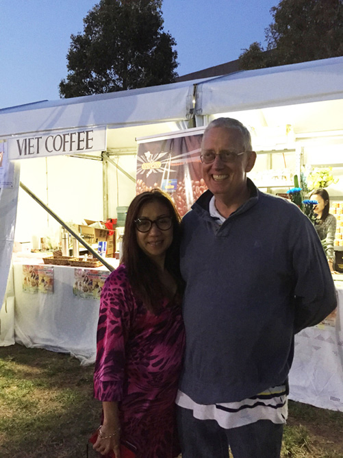 Ông Hugh Collin và vợ trước gian hàng quảng bá sản phẩm cà phê Việt tại Triển lăm Nông nghiệp Hoàng gia 2015 ở Perth.