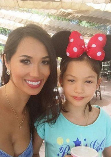 Angie Vũ Hà và con gái trong một chuyến đi chơi.