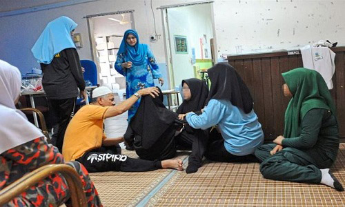 Các giáo viên đang chăm sóc cho một học sinh bị chứng cuồng loạn ở Malaysia. Ảnh: The Star