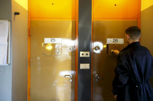 Cửa các buồng giam của Breivik có lỗ để lính gác theo dõi. Ảnh: BBC