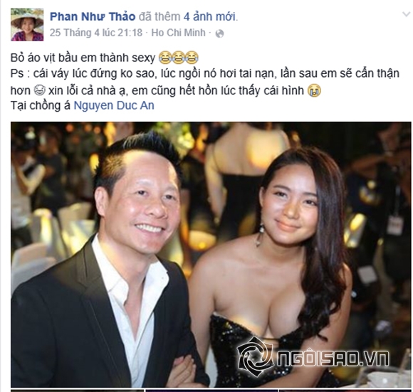 Dù Phan Như Thảo đã lên tiếng xin lỗi nhưng không ít cư dân mạng vẫn không ngừng "ném đá". Bà bầu tức giận: “Mình xin phép nói là tai nạn và đã xin lỗi, cách bạn dùng từ lố bịch và thảm hại mình thấy không phù hợp lắm, và bạn chắc hiểu lầm mình về vấn đề thích khoe thân với việc xảy ra không mong muốn. Không cùng quan điểm thì không nên bàn luận. Cám ơn bạn”.