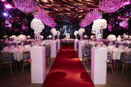 Không gian tiệc cưới của Lâm Tâm Như - Hoắc Kiến Hoa ngập màu tím lãng mạn.