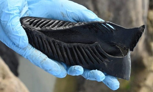 Chiếc giày cổ được các nhà khảo cổ phát hiện tại một hào nước ở pháo đài La Mã Vindolanda gần Hexham, Northumberland, Anh, Telegraph hôm qua đưa tin. Những gờ nhỏ chạy dọc theo lớp vỏ ngoài của chiếc giày và khoảng trống khoét theo đường cong để buộc dây kéo dài đến gần ngón chân trông rất giống giày đá bóng hiện đại.