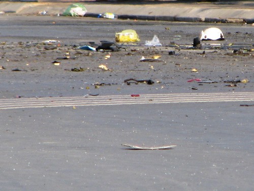 Nhiều mảnh vỡ từ xe taxi văng tung tóe khắp đường.