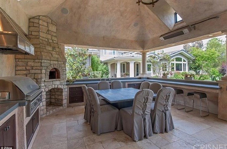 Phía ngoài vườn còn có một phòng khách ngoài trời được trang bị cả lò sưởi và tivi.