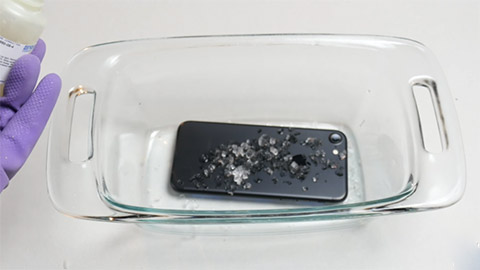 Nhiều thử thách đã được thí điểm trên iPhone 7. Trong clip dưới đây, chúng ta sẽ tận mắt chứng kiến ngâm iPhone 7 trong axit H2SO4. Cùng xem qua thời gian, iPhone 7 sẽ thay đổi như thế nào nha. Trước đó, chuyên gia thử thách TechRax đã đặt chiếc iPhone 7 vào trong chiếc hộp thủy tinh và đổ H2FSbF6 (loại axit cực mạnh) lên trên. Qua một thời gian có thể thấy lớp vỏ điện thoại đã bị ăn mòn phần nào.