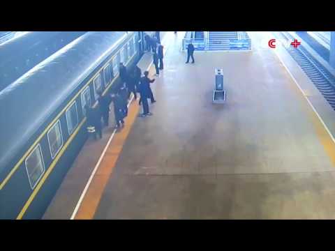 Một bà mẹ cùng con gái ba tuổi xuống tàu, đi lại thư giãn trong sân ga khi xe lửa dừng tại nhà ga Xining, tỉnh Thanh Hải, phía tây bắc Trung Quốc hôm 4/1. Trong khi bà mẹ đi phía trước, bé gái chạy phía sau và trượt chân ngã xuống khe hở giữa đoàn tàu và sân ga, theo CCTV.