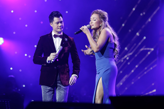 Thanh Hà gợi cảm bên Quang Dũng. Cả hai mang đến cho khán giả những bản tình ca nồng nàn.