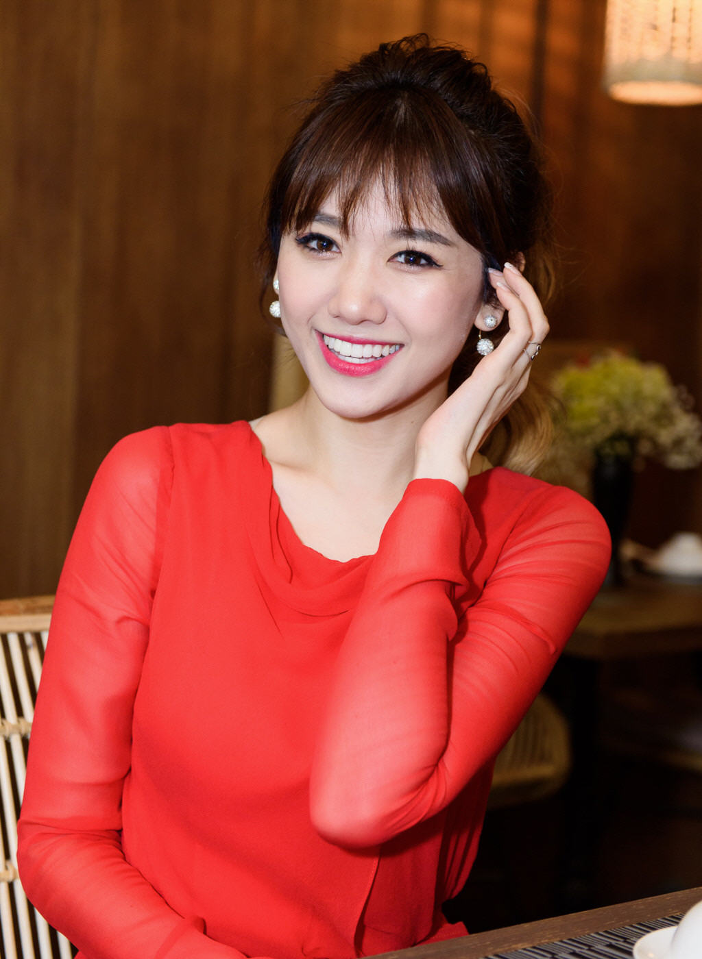 Đứng bên hai hoa hậu nhưng Hari Won không lép vế về nhan sắc. Bà xã Trấn Thành thực hiện chế độ giảm cân nghiêm khắc để có thân hình thanh mảnh.