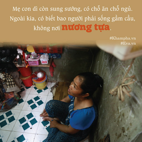 Không thể tưởng nổi hai mẹ con bà sống trong 1 "căn nhà" rộng tới...1m2. Ở trung tâm của quận 1 TP.HCM mà lại có một gia đ́nh sống khổ sở như vậy chăng? Bà chưa từng 1 lần được duỗi thẳng chân ngủ một cách ngon lành trong hơn 7 năm qua.