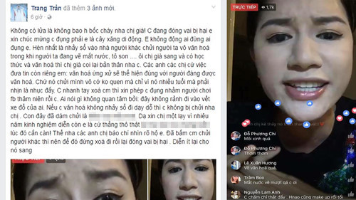 Dòng trạng thái của Trang Trần và clip sỉ vả nghệ sĩ Xuân HươngẢNH CHỤP MÀN HÌNH