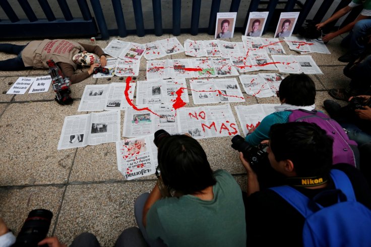 Các nhà báo biểu tình lên án tình trạng giết hại các nhà báo ở Mexico.