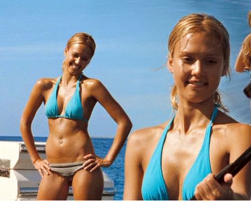 Sự xuất hiện của Jessica trong Into the Blue khiến cho bất cứ cô gái nào vào thời cũng muốn có 1 bộ bikini xanh ra biển buộc dây sau gáy đơn giản mà vẫn hấp dẫn.