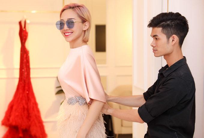 Linh Nga cũng tới showroom của nhà thiết kế Tùng Vũ để chọn đồ, chuẩn bị dự tiệc ở TP HCM.
