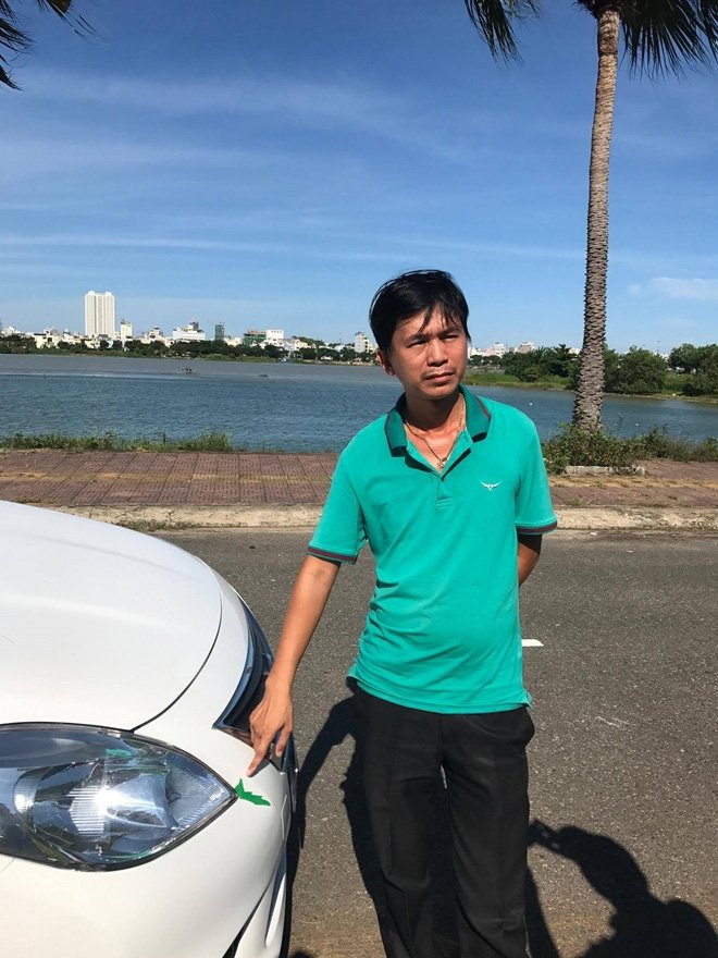 Anh Tài và chiếc xe có vết bóng tróc, lộ sơn lót màu xanh giống xe taxi