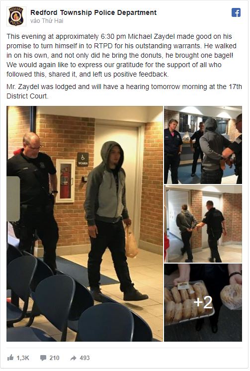 Nghi phạm 21 tuổi thậm chí còn hứa mang một hộp bánh đến sở cảnh sát Redford Township nếu họ thắng trong thử thách này.