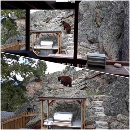 Hai lần sau gặp lại tôi cũng bớt sợ, do phát hiện từ lúc con gấu ở xa và chồng tôi đă dùng súng hơi đuổi nó đi.
