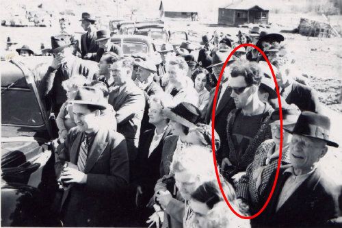 Bức ảnh này được chụp vào năm 1940, thoạt nhìn chẳng có gì là lạ. Thế nhưng khi nhìn kỹ hơn một chút, bạn sẽ phát hiện ra bên cạnh những người đàn ông và phụ nữ đang mặc các trang phục thường ngày của người dân Âu-Mỹ thời kỳ đó lại xuất hiện một thanh niên với trang phục khá hiện đại - với áo khoác có khóa kéo, kính râm và một chiếc máy ảnh cơ cầm tay. Vẻ ngoài hiện đại và khá thời trang của người đàn ông này có thể dễ dàng được bắt gặp vào thời điểm hiện tại, thế nhưng đặt vào bối cảnh trang phục này, ông nhìn lại có vẻ lạc quẻ và dễ khiến mọi người cảm thấy bối rối, vì ở năm 1940 thì những vật phẩm kia dường như chưa thể xuất hiện.