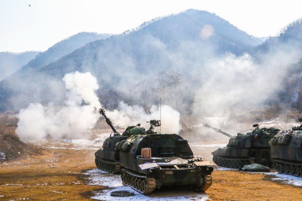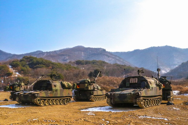 Ảnh lực lượng Pháo Đoàn Tự Hành bắn đạn thật gần biên giới cảnh cáo Bình Nhưỡng.