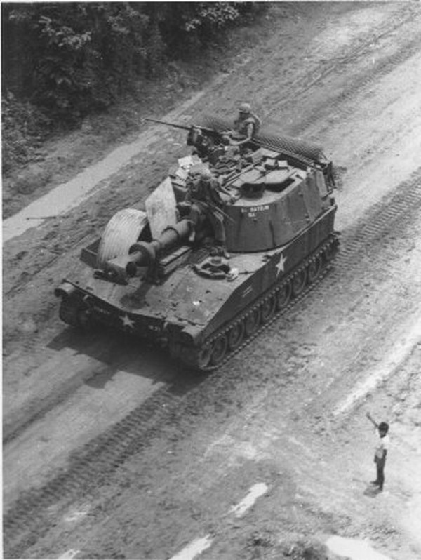 Ảnh một xe pháo tự hành M109 trong thời chiến tranh Việt Nam