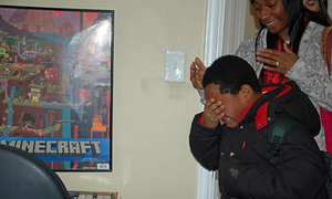 Cậu bé vô gia cư Mỹ không kìm nổi nước mắt khi được tặng giường ngủ