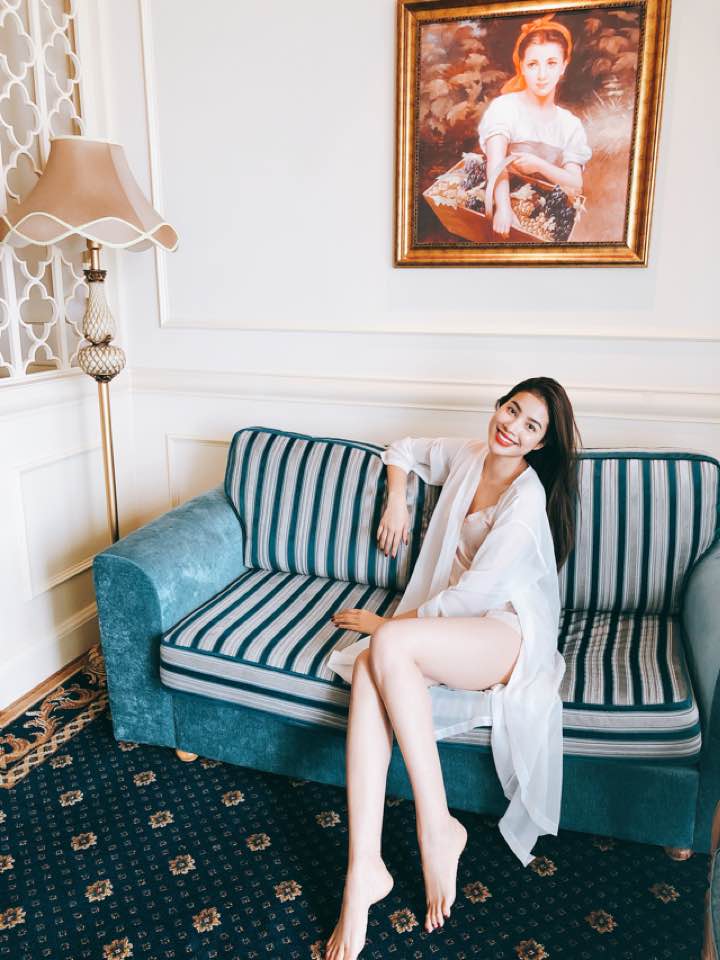 Hoa hậu Phạm Hương khoe đôi chân gợi cảm với váy ngủ mỏng tang vô cùng quyến rũ.
