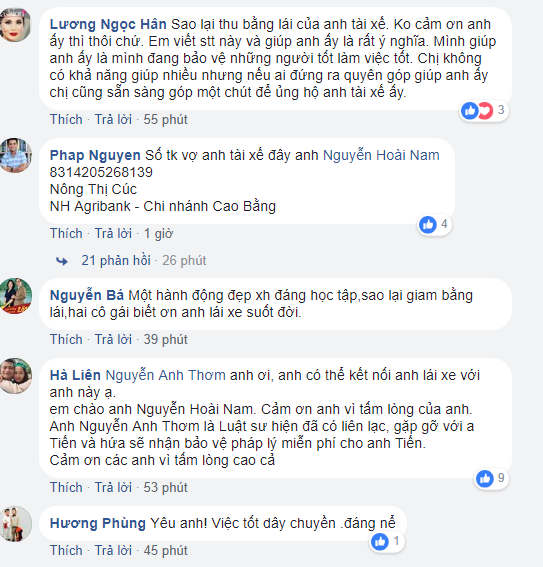 Bên dưới cmt tất cả mọi người đều cảm kích với tấm lòng vàng của anh, có người còn cung cấp thêm thông tin để anh có thể giúp đỡ người tài xế đó.