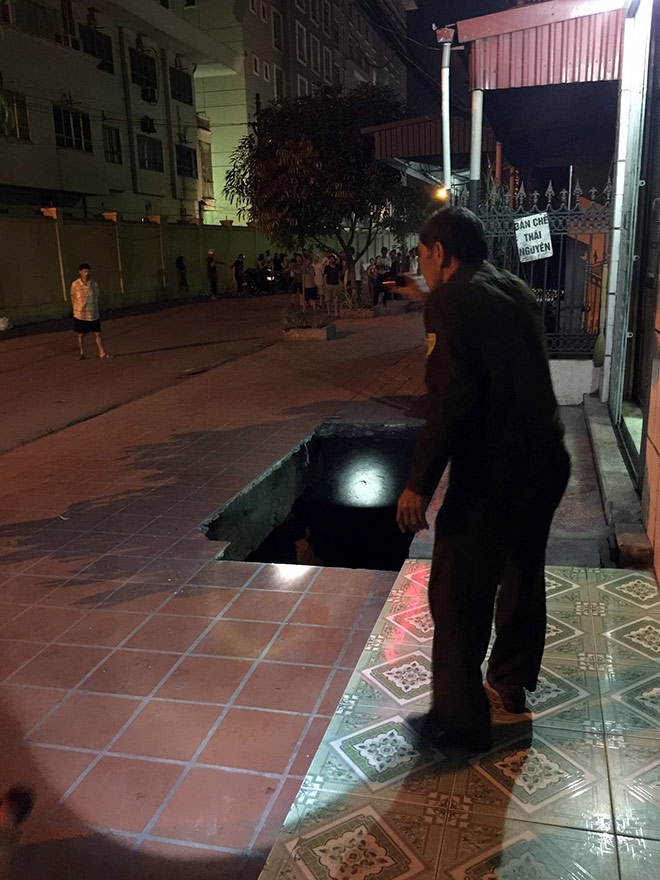 Trao đổi với PV, chị Trang (nhân chứng vụ việc) kể lại, vào khoảng thời gian trên chị nghe thấy tiếng động lớn trước cửa nhà, khi chạy ra xem thì thấy xuất hiện một chiếc hố lớn, miệng rộng khoảng 10m2, phía bên dưới rất rộng và sâu. “Nam thanh niên cùng 2 chiếc xe máy và một tấm biển quảng cáo bị sụt xuống hố, rất đông hàng xóm đưa thang xuống cứu được người và 1 chiếc xe máy lên, rất may anh ấy chỉ bị xây xát nhẹ.” Chị Trang thông tin thêm.
