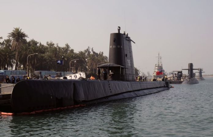 Ba tàu ngầm của Đài Loan tại cảng Cao Hùng. Chính quyền Đài Loan đang có chương trình tự đóng tàu ngầm. (Hình: Sam Yeh/AFP/Getty Images)