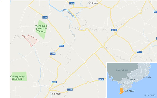 Xã Biển Bạch (màu đỏ) ở Cà Mau. Ảnh: Google Maps.