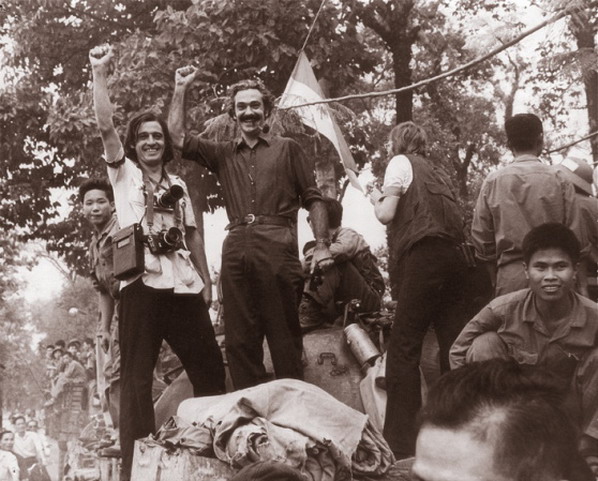 Ảnh ông Tiziano Terzani năm 1975, trên xe tăng VC