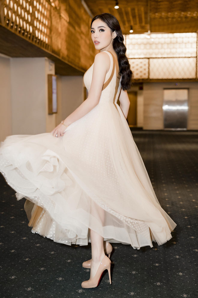 Tối qua (3.5), Hoa hậu Kỳ Duyên là khách mời đặc biệt của một sự kiện tại Sài Gòn. Người đẹp gây chú ý khi xuất hiện trong trang phục của NTK Lê Thanh Hòa. Bộ váy cắt xẻ táo bạo tôn vinh nét đầy đặn, giúp Kỳ Duyên cuốn hút, gợi cảm nhưng không kém phần lộng lẫy. Để tăng thêm phần hoàn hảo, Kỳ Duyên đeo thêm trang sức xa xỉ Chopard có giá 1,2 tỷ.