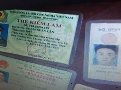 Khám xét đối tượng Lân và Dũng, lực lượng chức năng phát hiện có thẻ ngành Kiểm lâm số hiệu T1810228129 mang tên Phạm Xuân Lân, chức vụ Kiểm lâm viên trung cấp, đơn vị công tác: Chi cục Kiểm lâm Sơn La.