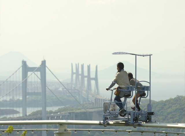 Đường ray xe đạp được thiết kế trên đỉnh đồi. Thậm chí có những vị trí còn cao hơn 16m, tạo nên sự phấn khích tột độ. Một xe đạp có hai chỗ ngồi cho du khách. Bạn phải đạp xe từ tốn đi men theo con đường uốn lượn từ trên cao. Vừa hồi hộp theo từng vòng quay lăn bánh, du khách có thể thư thái cảm nhận vẻ đẹp từ trên cao của vùng biển Seto. Trung bình, mỗi khách sẽ mất khoảng 3 phút để đi hết quãng đường gây “đau tim” này.