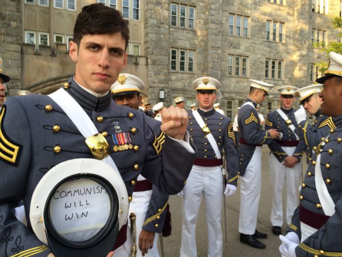 Spencer Rapone bày tỏ sự ủng hộ cộng sản trong lễ ra trường ở West Point hồi Tháng Năm 2016. (Hình: Spencer Rapone via AP)