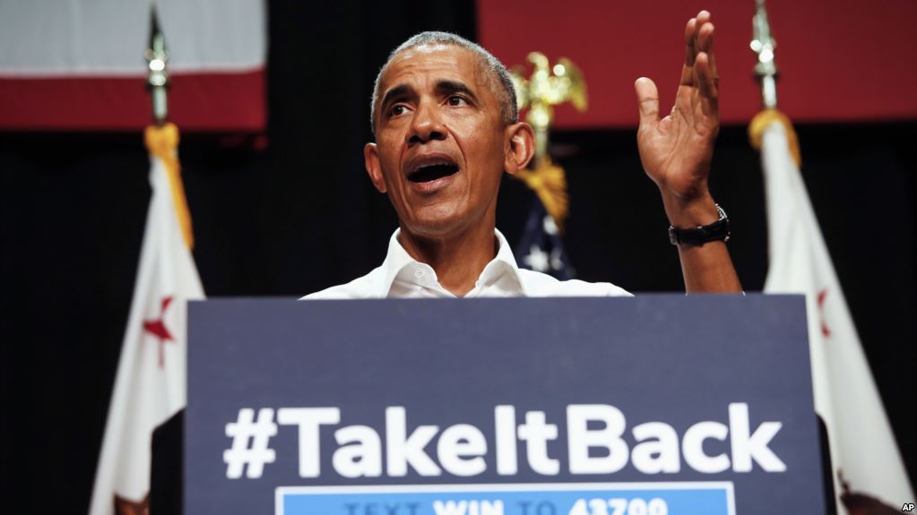 Ông đến bang California hôm thứ Bảy trong một nỗ lực nhằm tiếp sức cho một nhóm các ứng cử viên Đảng Dân đang thách thức những ghế được nắm giữ bởi các dân biểu Đảng Cộng hòa.