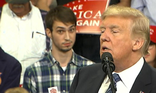 Trong lúc Tổng thống Mỹ Donald Trump phát biểu tại Montana hôm 6/9 về nhiều chủ đề, bao gồm cải cách thuế và truyền thông, Tyler Linfesty đứng sau ông, gương mặt hiện rõ dưới nhiều ống kính máy quay, theo Time. Tuy nhiên, nam sinh trung học này lúc thì nhướn mày, lúc cười mỉm, hai mắt nhấp nháy, biểu lộ sự hoang mang, hoài nghi những lời Trump nói. Một lúc sau, Linfesty và hai người bạn bị mời ra ngoài, thay thế bằng người khác.