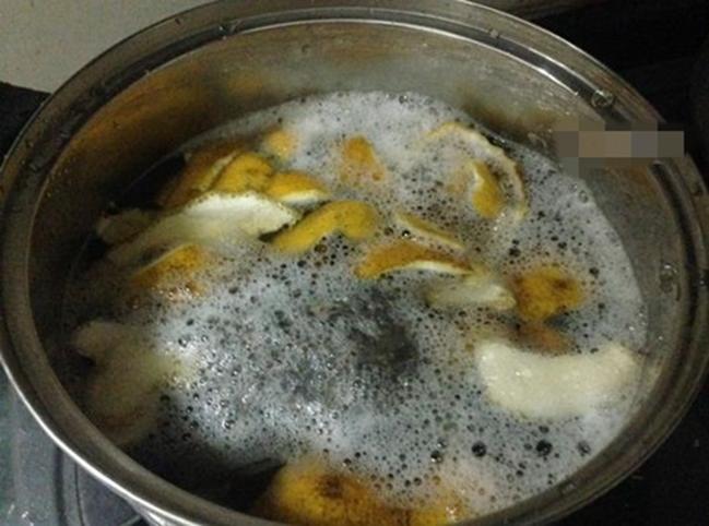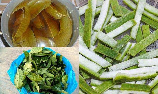 1, Trước khi tiến hành đun nước gội đầu, bạn rửa vỏ bưởi, lá chè xanh và lá ổi bằng nước sạch. Cẩn thận hơn, bạn có thể ngâm với nước muối pha loãng để loại bỏ hoàn toàn bụi bẩn, hóa chất nếu có. Sau đó, sơ chế nguyên liệu bằng cách vò nát lá ổi, lá trà xanh, vỏ bưởi cắt thành những mẩu ngắn để khi đun, lượng tinh dầu tiết ra nước nhanh hơn.