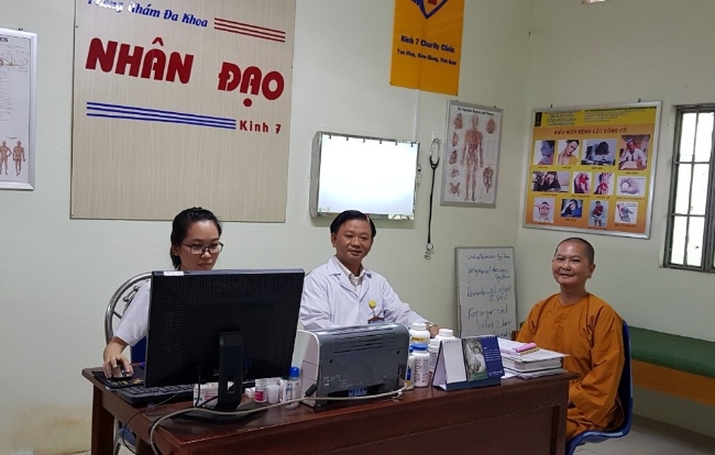 Một pḥng khám ở huyện Tân Hiệp, tỉnh Kiên Giang khám chữa bệnh, lo chỗ ăn ở miễn phí cho người nghèo, tu sĩ các tôn giáo, bà mẹ Việt nam anh hùng. Mỗi năm pḥng khám điều trị thành công cho hàng ngàn bệnh nhân từ trong nước cả nước ngoài.